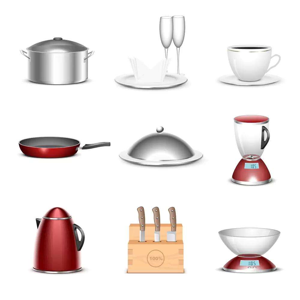 4.廚房及相關(guān)用品:鍋,碗,杯子,勺子,刀叉,飯盒,烤架,烤架配件,攪拌器,廚房用電子秤,等